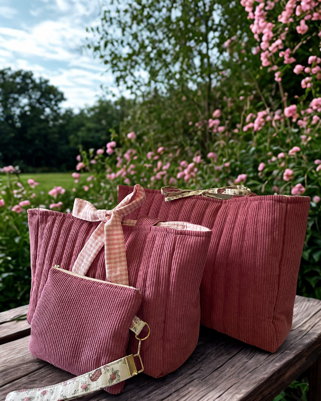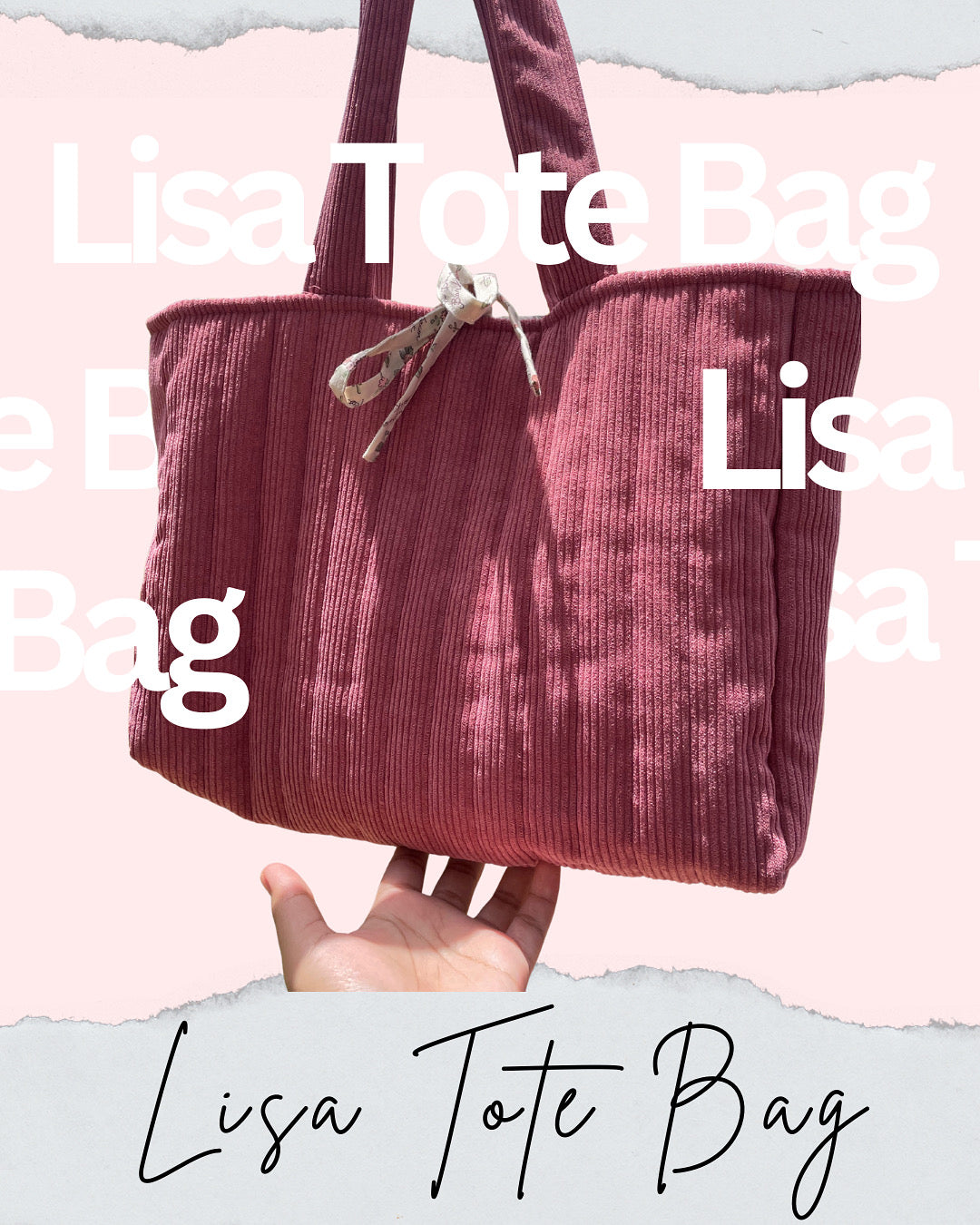 Lisa Tote Bag in Pink Corduroy
